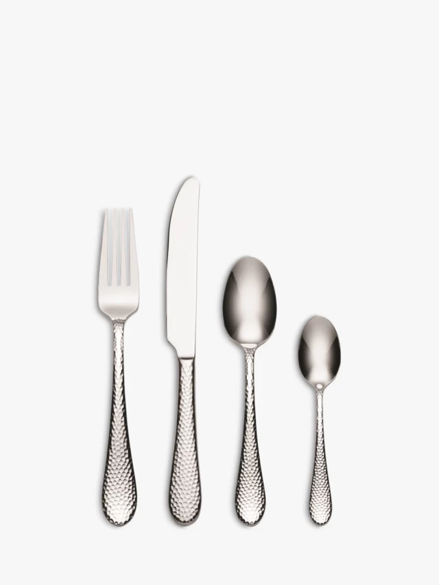Drawing inspiration from ancient Tibetan antiquities, Oneida presents an artisan, hand-crafted homage to the mystical heritage. Resembling the softly rounded slopes of the Himalayas and adorned with a hammered finish reminiscent of dimpled snow, the Tibet cutlery exudes tranquility for the dining table.